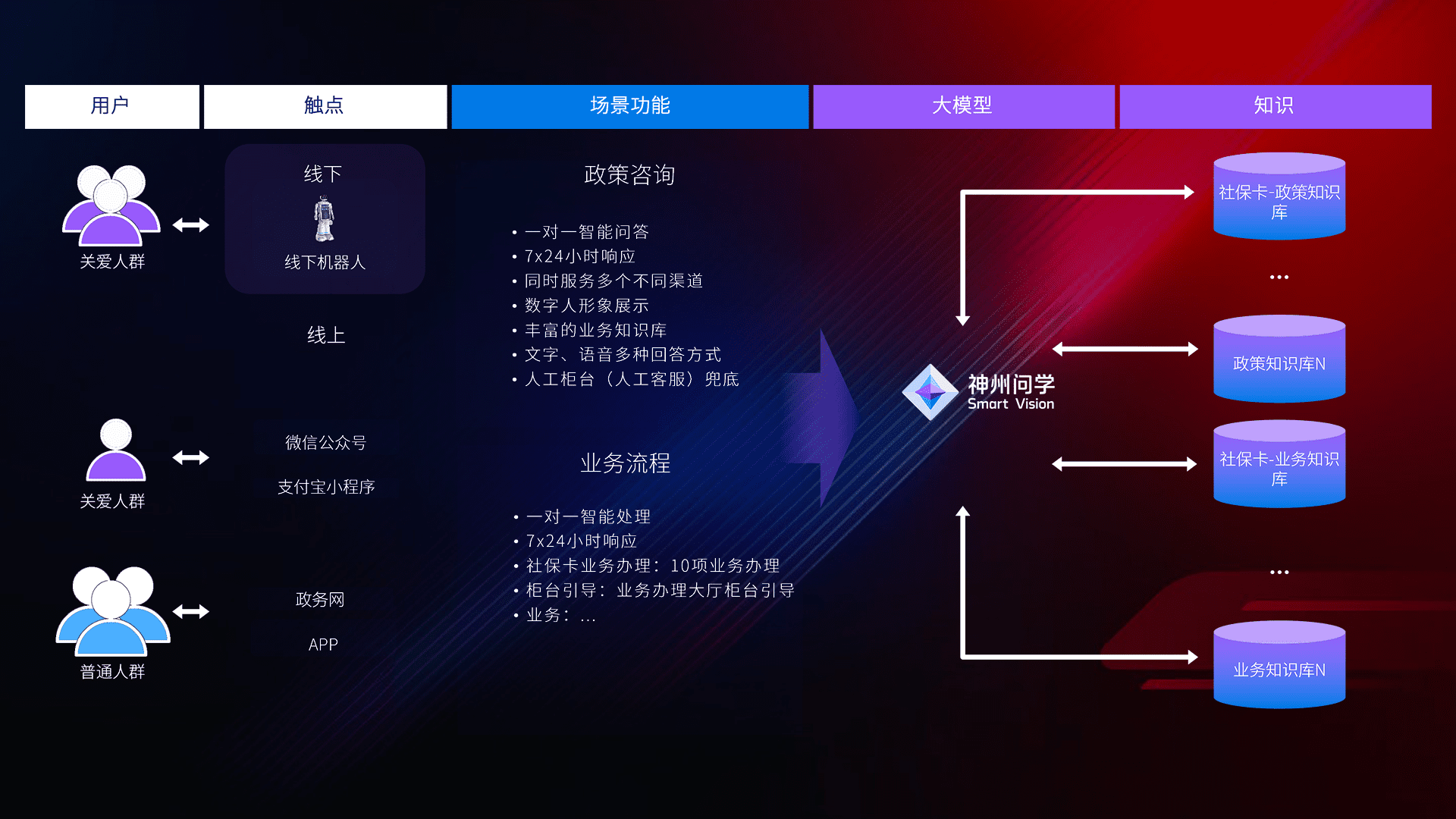 在服务大厅部署客服机器人,,在线上应用和小程序配置客服数字人,,,724小时为群众解答常规问题,,客服机器人无法处理的,,,转现场人工处理。。